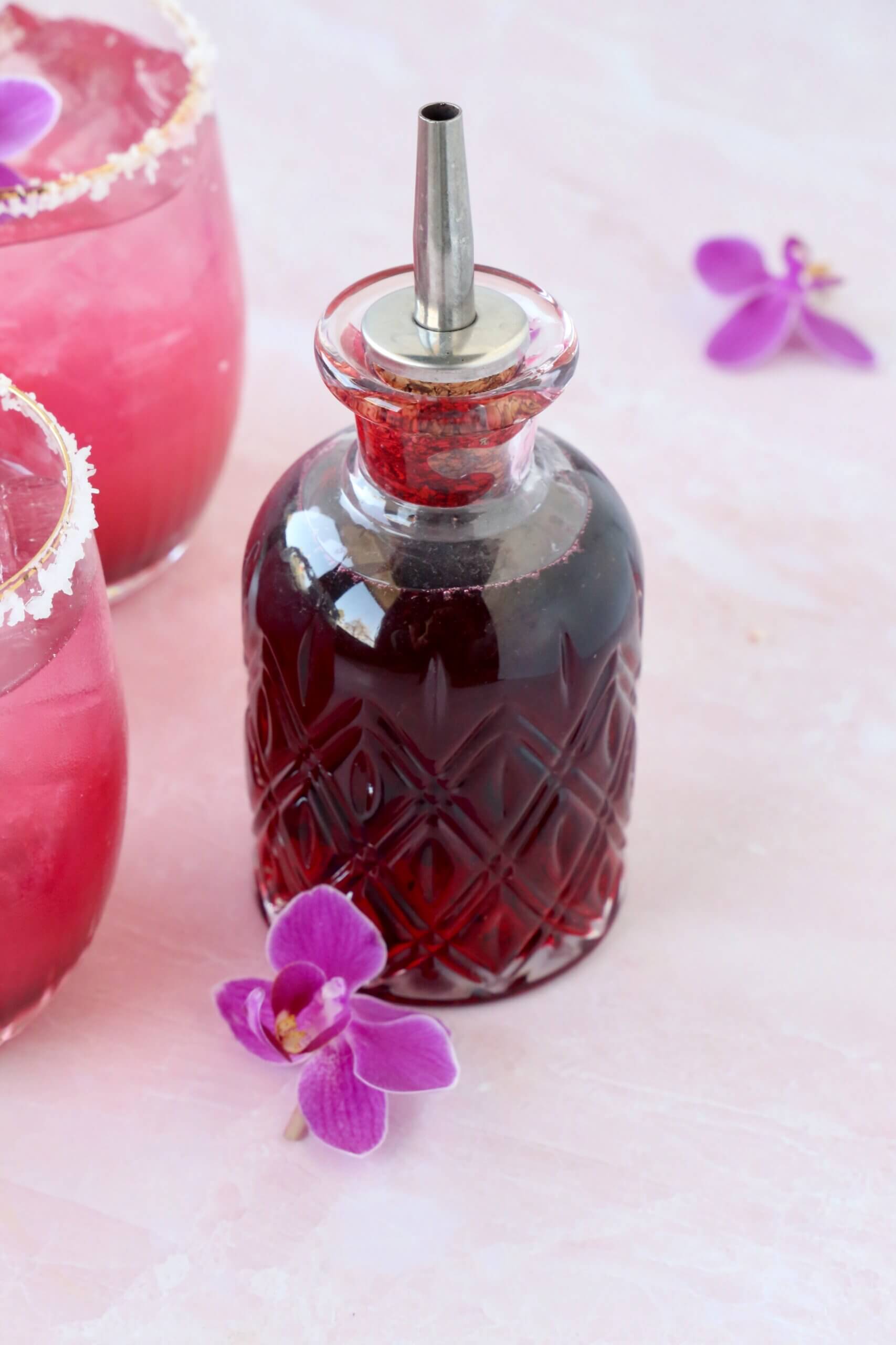 - Pour the Hibiscus Syrup into a glass bottle or jar and store in the refrigerator until ready to use.